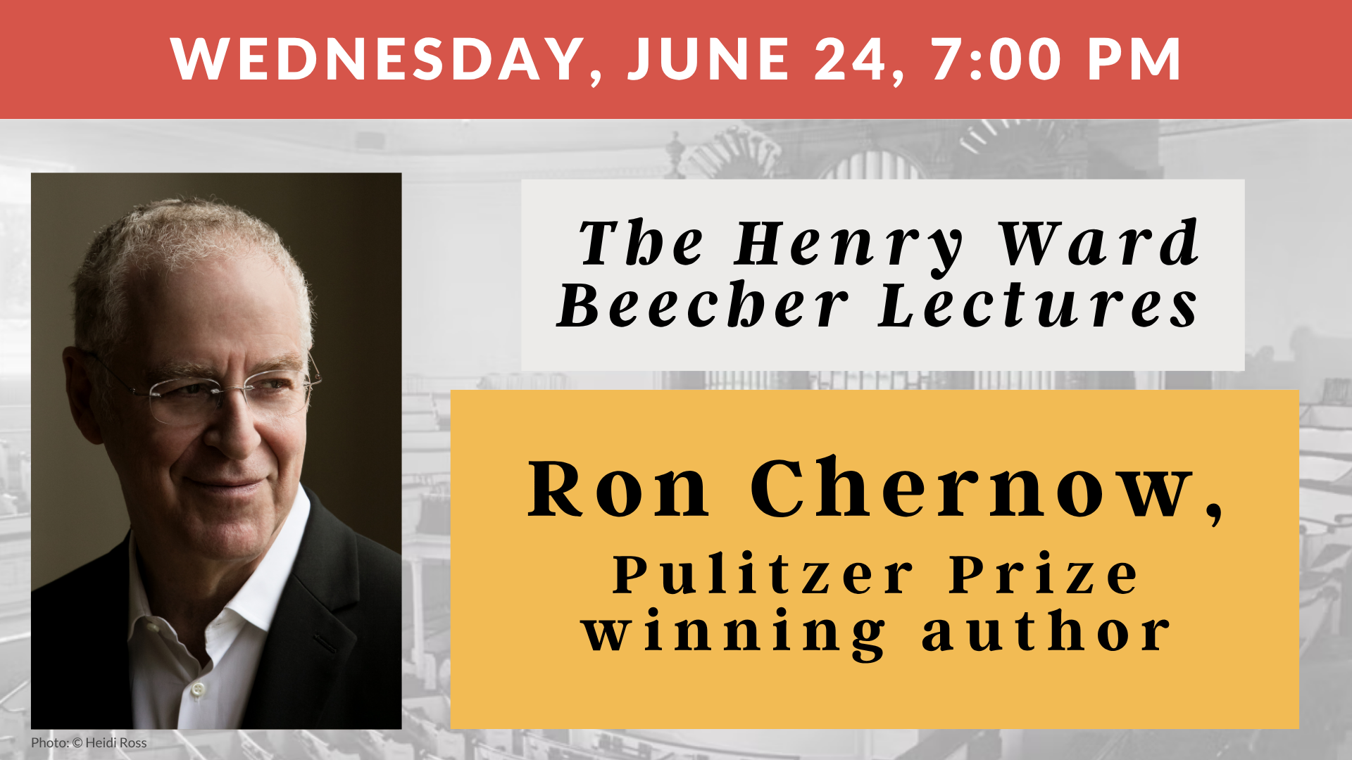 Henry Ward Beecher Lecture Series: Ron Chernow | Wednesday, June 24, 7:00 PM | Sanctuary